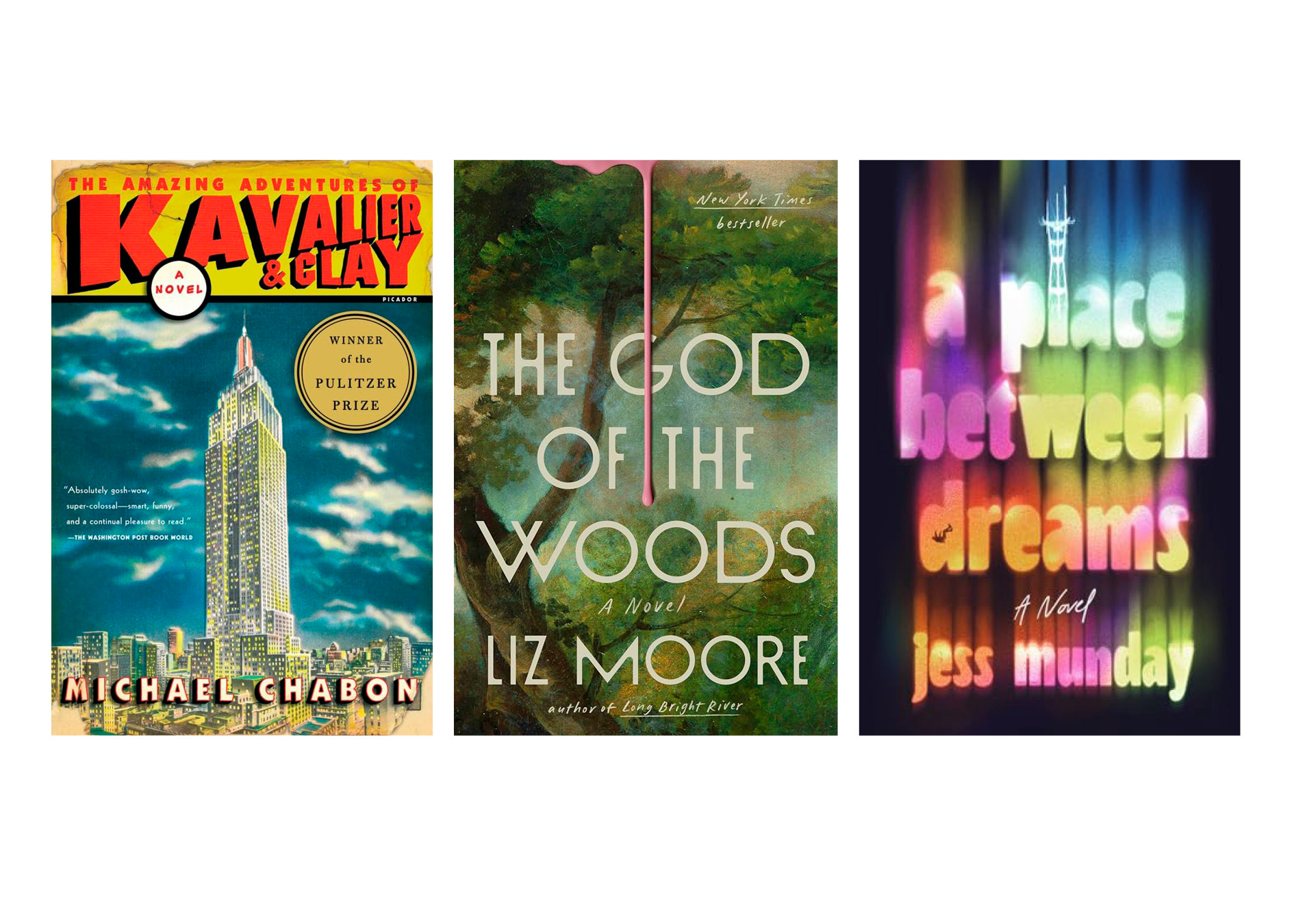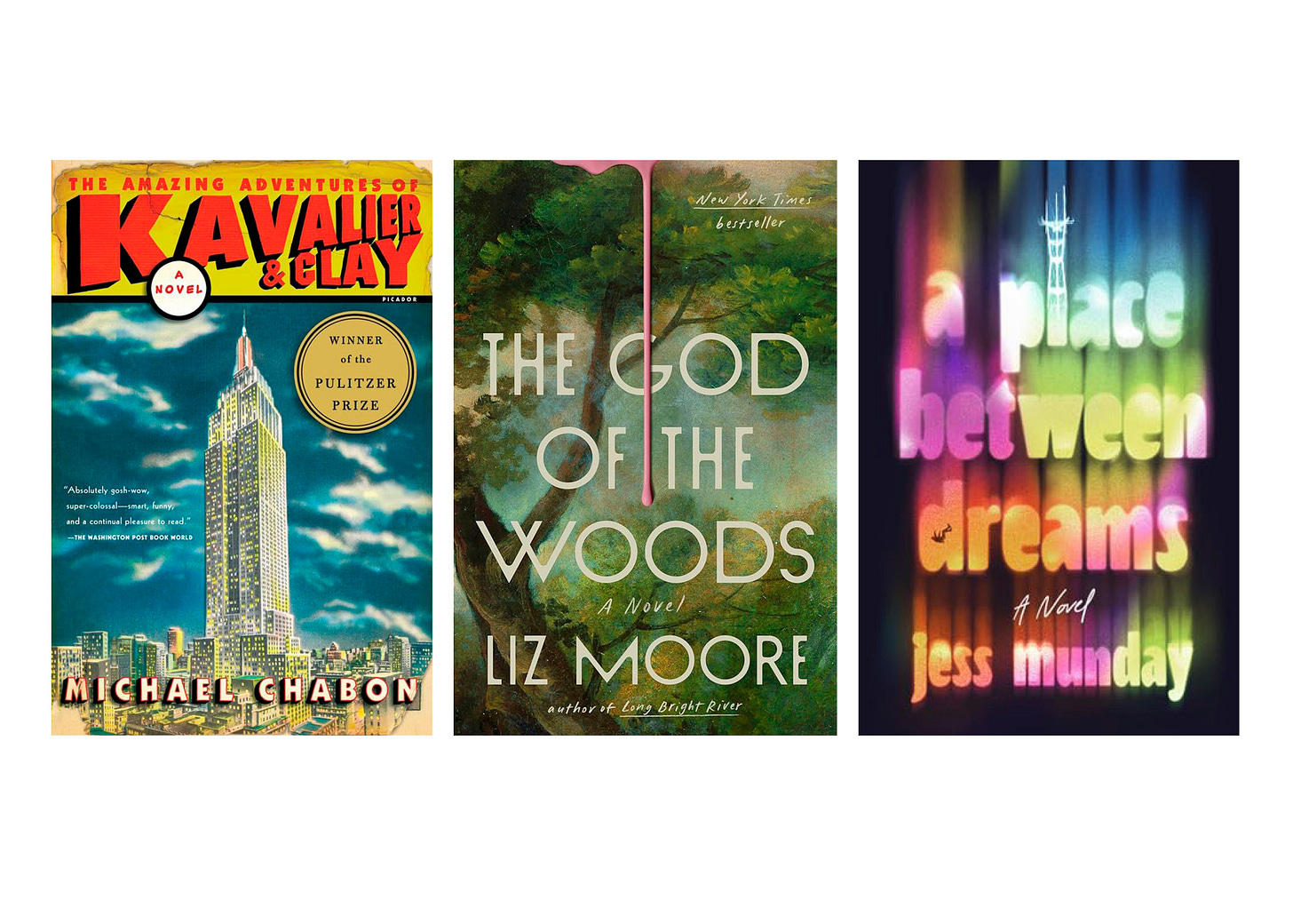 A childhood favorite: The Amazing Adventures of Kavalier and Clay by Michael Chabon (designed by Henry Yee), a recent icon: The God of the Woods by Liz Moore (designed by Grace Han) and a cover so good I wish I had designed it myself: A Place Between Dreams by Jess Munday (designed by Luísa Dias).